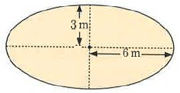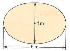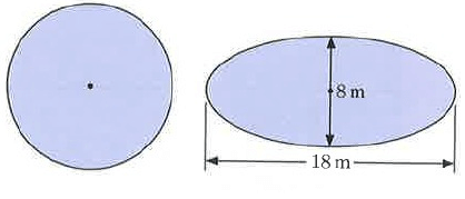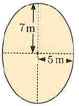 The circle and the ellipse alongside have the same area. Find the radius of the circle.