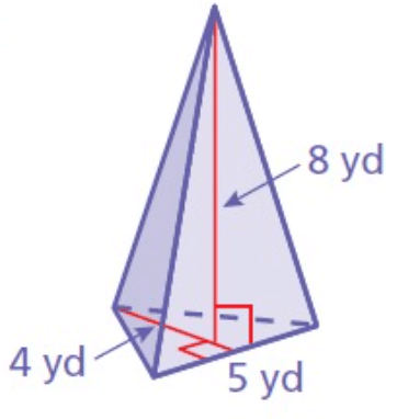 Base Area = 10 yd2 and Height = 8 yd