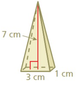 b) The base of the other pyramid has a side length of 3 centimeters. What is the height of this pyramid ?