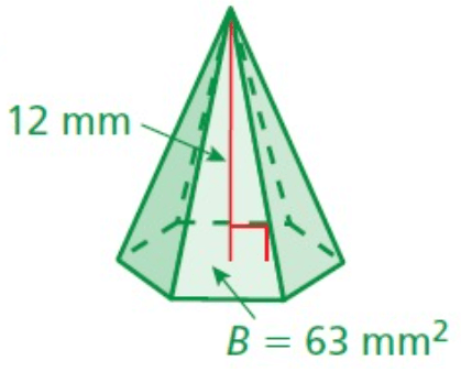 Volume of pyramid = (1/3) ⋅ base area ⋅ height