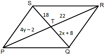 PT = TR 4y - 2 = 22 4y = 22 + 2 4y = 24 y = 24/4 y = 6 |