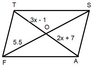 Length of diagonal TA = 3x - 1 + 2x + 7