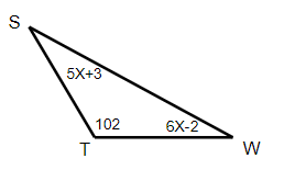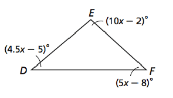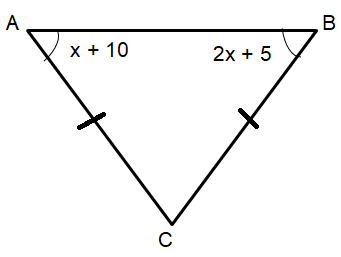 with m∠X = 50, m∠Y = 5x + 10 and m∠Z = 5x.