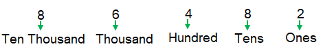 Here the digit 4 in 86482 is represented as 4 hundred (or) 400.