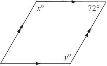 y + 72 = 180 y = 180 - 72 y = 108 |