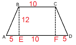 The bases of an isosceles trapezoid ABCD measure 10 cm and 20 cm. The height (altitude) is 12 cm. How long are the legs AB and CD?