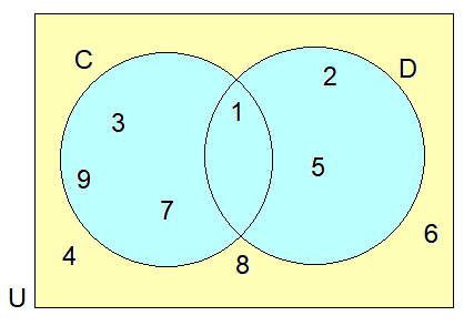 U = {1, 2, 3, 4, 5, 6, 7, 8, 9}