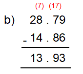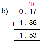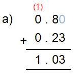 a) 0.8 + 0.23 b) 0.17 + 1.36 |