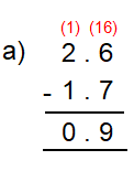 a) 2.6 – 1.7 b) 1 – 0.3 |