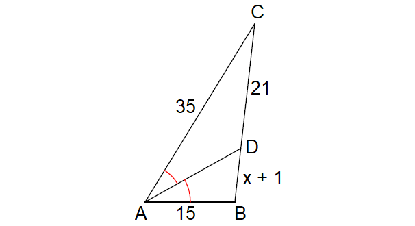BD = x + 1, DC = 21, AB = 15 and AC = 35