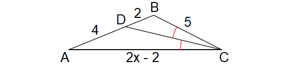 BD = 2, DA = 4, BC = 5 and AC = 2x - 2
