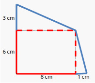 Area of Compound Shapes = Area of a rectangle + Area of a triangle + Area of a triangle