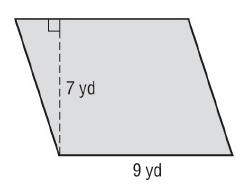 Find the height of a parallelogram with an area of 63 square yards and a base 9 yards.