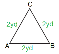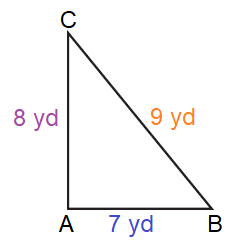 AB = 7 yd, BC = 9 yd, and, AC = 8 yd