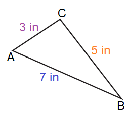 AB = 7 in, BC = 5 in, and, AC = 3 in