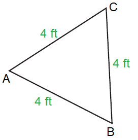 AB = 5 ft, BC = 3 ft, and, AC = 3 ft