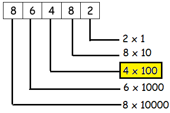732 = 7 x 100 + 3 x 10 + 2 x 1