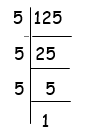 125 = 5×5×5 5 is repeated 3 times. So, the exponential form is 53. |