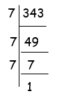 343 = 7 × 7 × 7 Here, 7 is repeated 3 times