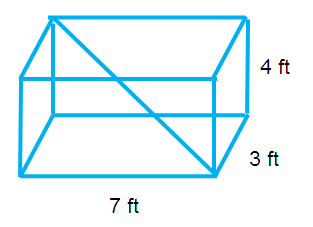 Length = 7 ft, width = 3 ft and height = 4 ft
