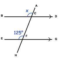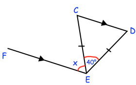 ∠EFA = ∠BCA = x (Corresponding angles)