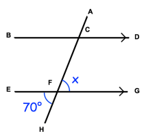x = 70 (Alternate interior angles)