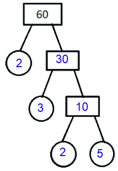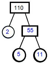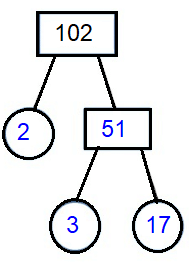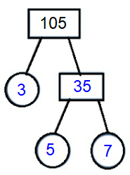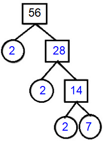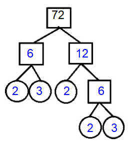 Each branch in the tree is divided into factors, and if the factor at the end of the branch is a prime number, there are only two factors, so the branch stops and we circle the number.