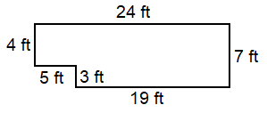 Here a = 4ft, b = 24 ft, c = 7 ft, d = 19 ft, e = 3 ft, and f = 5 ft