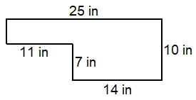Here a = 25 in, b = 10 in, c = 14 in, d = 7 in, e = 11 in