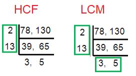 LCM of (78, 130) = 2 x 5 x 3 x13 ==> 390