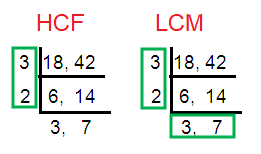 LCM of (18, 42) = 32 × 2 x 7 ==> 126