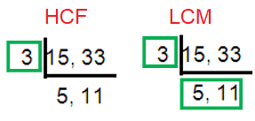 LCM of (15, 33) = 3 x 11 x 5 ==> 165