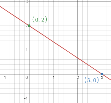 y-intercept : x = 0 0 + 3y = -6 3y = -6 y = -2 (0, -2) |