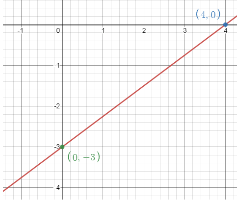 x-intercept : y = 0 3x - 4y = 12 3x - 0 = 12 3x = 12 x = 4 (4, 0) |