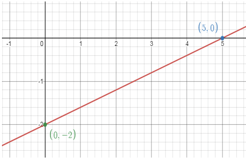 Plot (5, 0) and (0, -2) by connecting these two points, we will get the line.