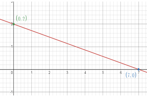 Plot (7, 0) and (0, 2), by connecting these two points, we will get the line.