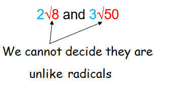 After simplification, we get the same values inside the radical sign. So, they are unlike radicals.