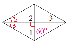 Here ∠2 = ∠1, because the diagonal is the angle bisector.