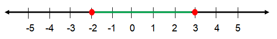 Since the given inequalities -2 ≤ x ≤ 3 (less than or equal and less than or equal), we draw the line from -2 with a filled circle to 3 with a filled circle on the number line.
