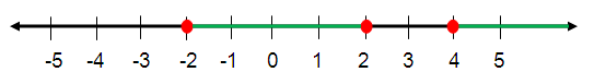{x│ -2 ≤ x ≤ 2 or x ≥ 4}
