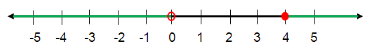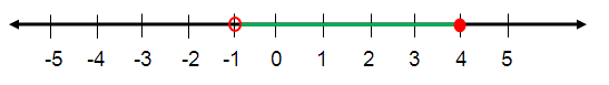 Since the given inequalities -1 < x ≤ 4 (less than and less than or equal), we draw the line from -1 with an unfilled circle to 4 with a filled circle on the number line.