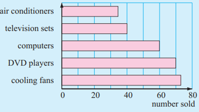 The bar graph shows the number of different items sold in an electrical goods store in a given month.