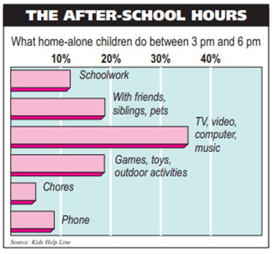 The graph along side displays the result of a national phone in of children ages six to sixteen as to what they do at home between 3 pm to 6 pm