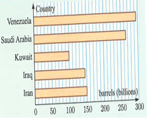 Iran = 150, Iraq = 145, Kuwait = 100, Saudi Arabia = 255, Venezuela = 295