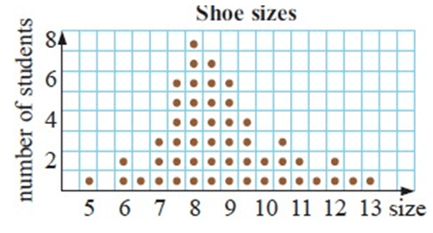 2) a) 50 students b) 22 shoe sizes c) 74%