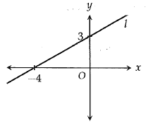 The graph of the line l is shown in the xy plane above. The y-intercept of the line l is 3 and the x-intercept is -4. If the line m is perpendicular to line l, what is the slope of the line m ?