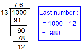 To find the last number which is divisible by 13 and lesser than 1000 is 988.