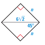 The perimeter of the square is 36 inches. Find the length of the diagonal. Solution