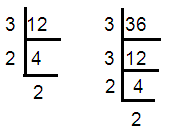 36 = 3 × 3 × 2 × 2 ==> 32 x 22