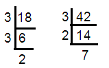 LCM of (18, 42) = 32 × 2 x 7 ==> 126